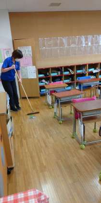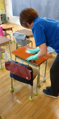 職員による放課後の清掃・消毒。