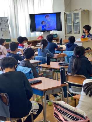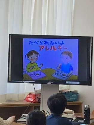 4月の食育・給食目標は「食物アレルギーを知ろう」です。今日の全校朝会で子供たちは、紙芝居を見ながら、食物アレルギーについて学習しました。
