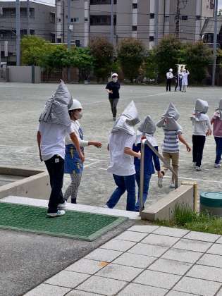 今年度2回目の避難訓練です。前回は雨天だったので全校廊下への避難でしたが、今日の避難訓練は、廊下、校庭、ビオトープと、避難する場所を分けて訓練を行いました。子供たちは放送や先生の指示をしっかり守り、落ち着いて避難ができました。
