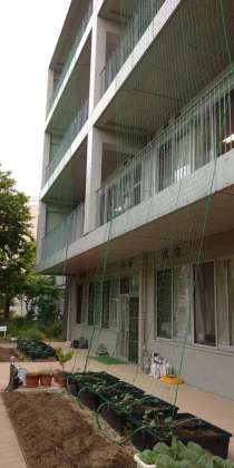 学校支援コーディネーターと学校運営委員の方の尽力により、緑のカーテンの準備が整いました。