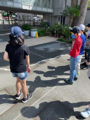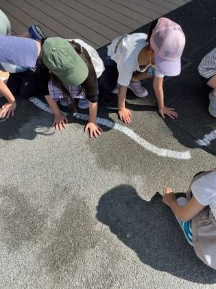 地面を触って、地面の温かさを確かめている子供もいました。これからの学習につながりますね。
