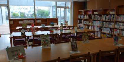 間隔を開けて座れるよう、空けてほしい机の上には司書が選んだ本が紹介されています。