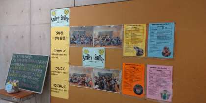 今は学年目標やそれぞれのクラスの学級写真、担任の自己紹介などが掲示されていました。