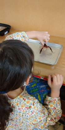 初めてザリガニを触る児童もいて、いい経験になりました。