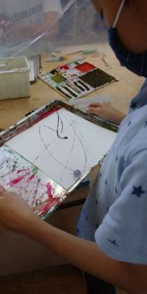 5月13日の学校日記ではスパッタリングという技法を使って、画用紙に模様を描いていている様子をお伝えしましたが、
