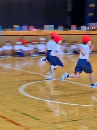 昨日の2年生に引き続き、今日は1年生がシャトルランを行いました。ボランティアの保護者の方々を目の前にして、1年生の子供たちはとても嬉しそうに、体育館を走っていました。