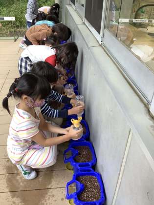 14日(金)までに全クラスのアサガオの種まきが終わり、今週から朝の支度に「アサガオの水やり」が加わりました。