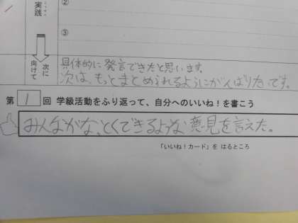 学級目標が子供たちの中で、共通で目指すべきものになっていることを感じ、とても嬉しく思いました。