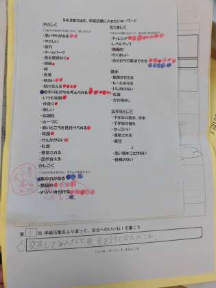 子供たちが、クラスのために意見を出し合い、考え合ったことで全員が、1年間目指していきたいと思える目標になりました。