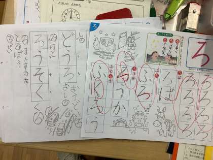 「つ」から始まったひらがなの学習も、今日の「ろ」で21個目のひらがなになりました。今週で、ひらがなの学習も折り返しです。