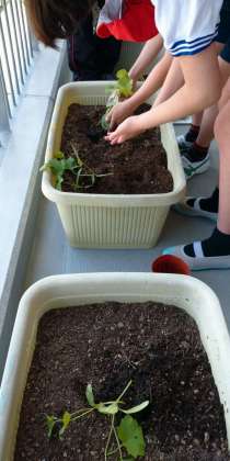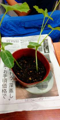 くすのき学級ではヘチマの観察をして、プランターへの植え替えを行っていました。