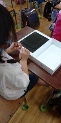 今日は電源の入れ方とパスワードの入力方法を教え家庭に持ち帰らせています。