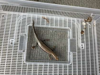 嬉しそうな子供の声に、思わず見に行くと、なんとツルッツルの美しいトカゲがそこに・・・。