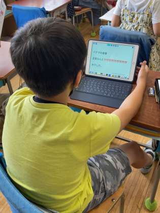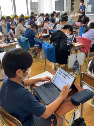 5年生の総合の学習です。パナマ共和国について、子供たち一人一人が課題を決めて、調べ学習を行いました。パナマの歴史・自然・食文化・気候など、いろいろな課題を設定していました。ロイロノートのプレゼンテーション機能を使って、調べたことをまとめているところです。