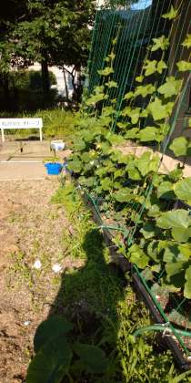 また、ビオトープでは、キュウリが実をつけはじめ、ビワがたくさん実っています。