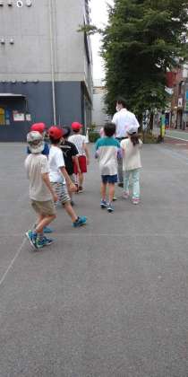 1キロメートルはどれくらいの長さなのか、実際に校舎の周りを歩いて体感しました。