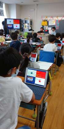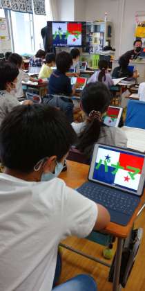 手元のタブレットでプレゼンをみることができるため、教室の後ろの方の児童も文字をしっかりと読むことができます。