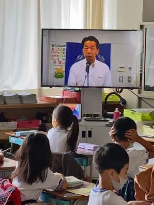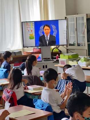 校長先生の話の後には、先週の土曜日で実習を終えた教育実習生から全校児童に向けて挨拶がありました。「皆さん、4週間ありがとうございました」