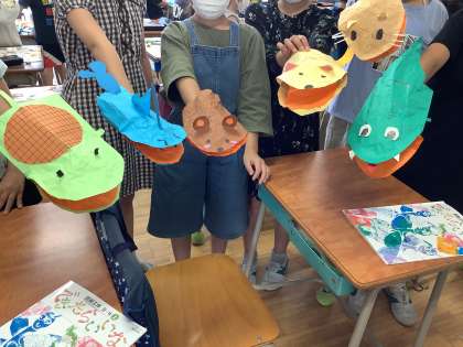 牙を付けたり、ひげを付けたりして想い想いの動物に変身しました。