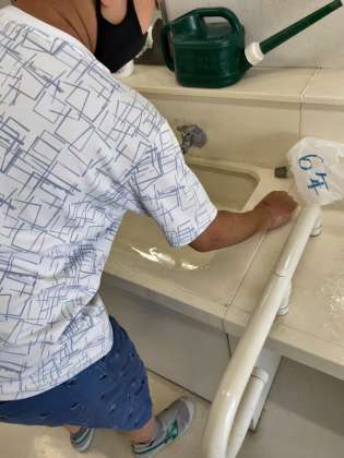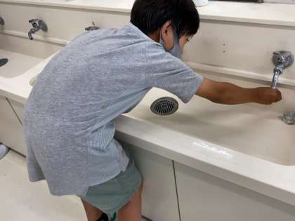 保健委員会の子供たちが委員会の時間に流し場を綺麗にしていました。劇落ちするスポンジを使って、流し場の黒ずんでいる箇所をゴシゴシ。「掃除が好きになった」と前向きに活動する高学年の子供たちでした。また、ハンドソープの泡の詰め替えもしっかり行っていました。
