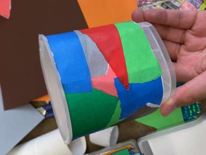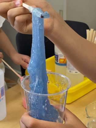 ペン立てとスライム、両方とも、色遣いに個性が出ます。落ち着いた色を好む子、色の組み合わせを工夫する子、キラキラのラメを混ぜる子などなど、自分好みのペン立てとスライムを作ることができました。
