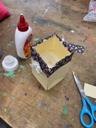 美術クラブは美術Aと美術Bに分かれて活動しています。今日のクラブ活動で美術Aはペン立て作り、美術Bはスライム作りを行いました。