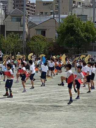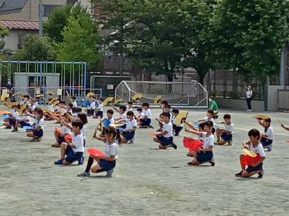 宮城県の地域に伝わる民舞「はねこ踊り」にチャレンジした3年生。太鼓と笛の演奏に合わせて、体全体を使って、たくさん跳ねて踊りました。「ソレ」の掛け声も揃っていて、元気いっぱいな3年生を見せてくれました。