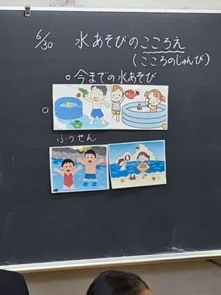 あと3週間で夏休み。夏休みには毎年必ず海や川での事故があります。今日は2年生が体育の授業で「水遊びの心得」について学習しました。