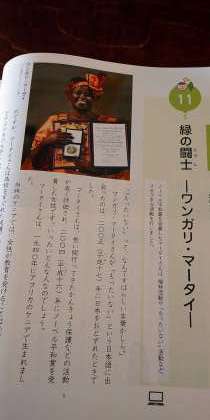 (ワンガリ・マータイさんは2004年12月10日、「持続可能な開発、民主主義と平和への貢献」により、環境分野の活動家およびアフリカ人女性として史上初のノーベル平和賞を受賞した方です。)