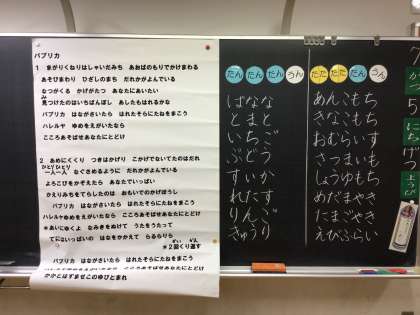 今月の歌が、6月の「にじ」から7月の「パプリカ」になりました。ほとんどの児童が、踊りながら歌っていました。