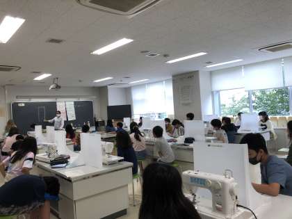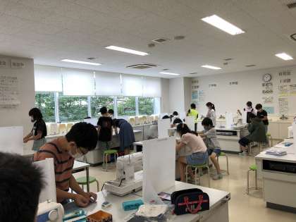 ミシンの操作に困った時、先生に聞く前にまず同じテーブルの友達に聞いて教え合いをしている様子が印象的でした。