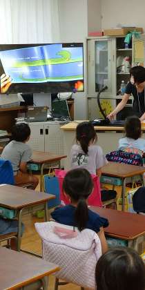 今日はおはなし会ボランティアの方が1年生とくすのき学級(1〜3年生)の児童に読み聞かせをしてくれました。