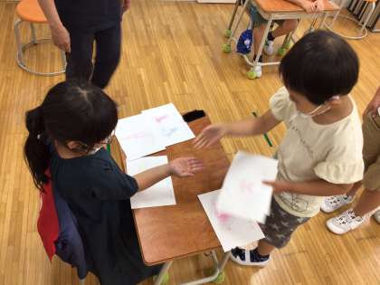7/19 お店屋さん くすのき学級1・2年 公開日 2021/07/19 更新日 2021/07/19 できごと 4時間目にお店屋さんごっこをして、事前に描いた好きな物を売りました。 お化粧品、車、家、虫など・・・。 「いらっしゃいませ。」「ありがとうございます。」「どれにしますか。」などの台詞を言いながらお店屋さんとお客さんに分かれて楽しみました。 いいね(0)