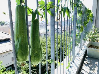 6年生教室横のベランダには立派な緑のカーテンができました。