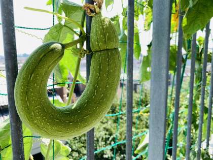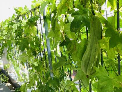 中でも瓜がものすごい成長で、形も様々です。