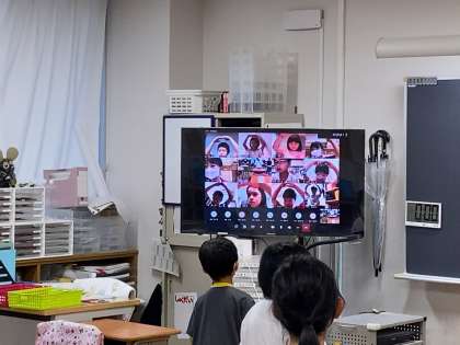 今日から分散登校が始まりました。Bグループの自宅学習の児童はTeamsを使っての初めての健康観察となりましたが、自分の健康状態をジェスチャーを使って表し、笑顔を見せてくれました。教室で画面を見るAグループの子供たちも、友達の表情を見ることができ、とても嬉しそうでした。