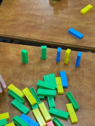 きはだ学級の子供たちも別部屋での活動になりましたが、ブロックをドミノにしたり、タワー風に積み上げたりして、工夫しながら遊ぶことができました。