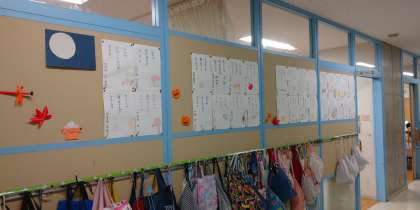 4年生も秋の季語を入れたオリジナルの俳句を作って掲示されています。