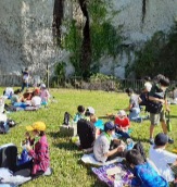 大谷景観公園で昼食です。 お弁当をおいしくいただきました。