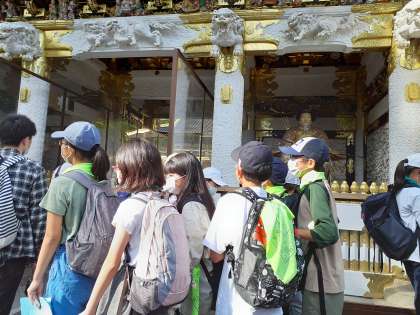 10/8 日光林間学園5 日光東照宮 公開日 2021/10/08 更新日 2021/10/08 できごと 日光東照宮に到着しました。 行動班で活動し、調べてきたことをみんなで教え合っています。 いいね(0)