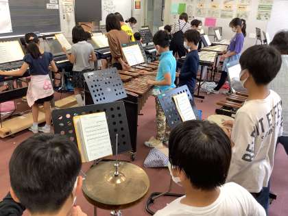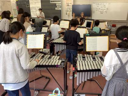 音楽学習発表会にて演奏する「ルパン三世」のテーマの練習を行っています。ボランティアのお家の方の力を借りながら楽しく練習に励んでいます。少しずつ各パートの音も揃ってきました。
