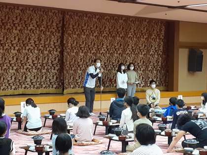 子供たちは朝ごはんを食べ、今日の活動のエネルギーを充電しました。