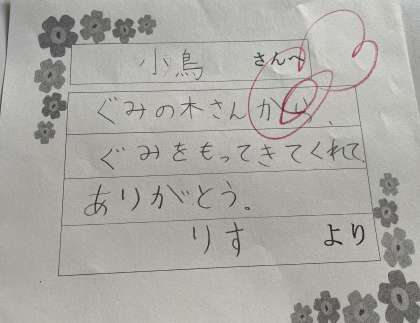 10/11 道徳 2年生 公開日 2021/10/11 更新日 2021/10/11 できごと 「ぐみの木と小鳥」というお話から「親切・思いやり」について考えました。 教材を通して、相手のことを思って考える親切は、どんな形であれ大切なのだという気持ちに気付くことができました。 最後には、一生懸命ぐみの実を運んでくれた小鳥にリスさんになりきってお手紙を書きました。 いいね(0)