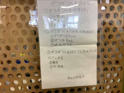 飾り係が窓を装飾したり、クイズ係がクイズを掲示したりしています。