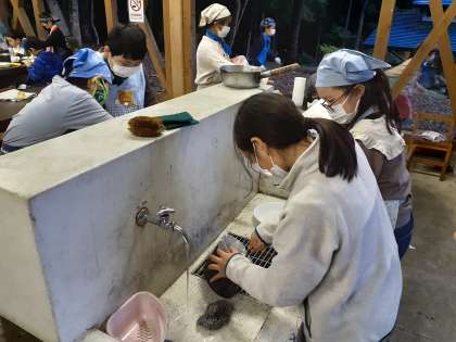 後片付けをし、次はキャンプファイヤーの準備です。