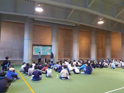 ラジオ体操を行い、昨日の班長会議であがった反省点と改善点を全員で共有しました。