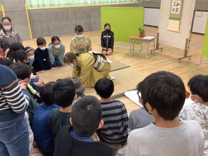 茶道の先生をお招きしてお茶の立て方や、茶道の心を教えていただきました。自分の立てたお茶を嬉しそうに飲む姿が見られました。