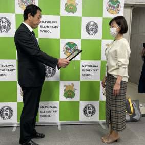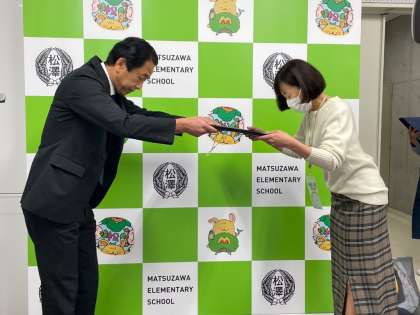 10月25日(月)から松沢小学校の図書室にリーバ(図書除菌機)が導入され、本の家庭への持ち帰りが可能になりました。今日はそのリーバがPTAから学校に寄贈されたことへの感謝状の贈呈を行いました。