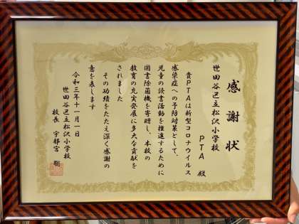 子供たちが豊かな読書体験をできるように、教育環境の整備に協力してくださったPTAの活動に感謝したいと思います。これから、松沢小の子供たちのためにリーバを大切に使っていきます。
