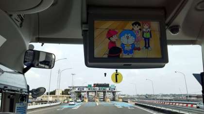 バスの中ではDVDを見て、静かに、時折笑いが入りながら乗車中です。